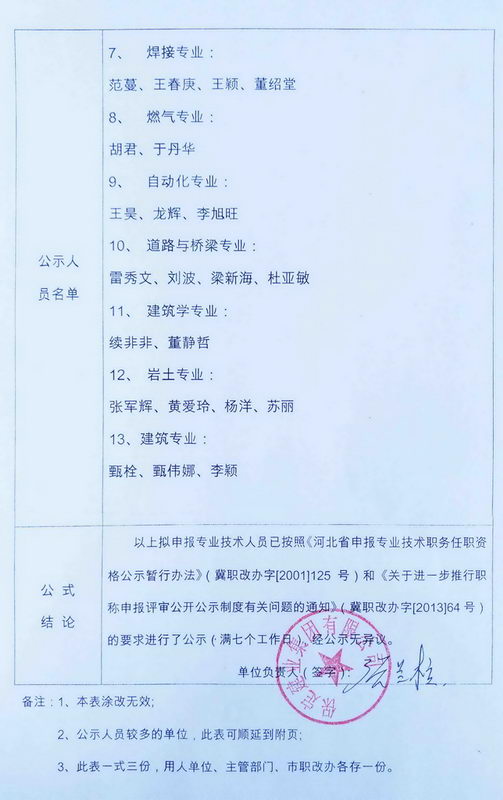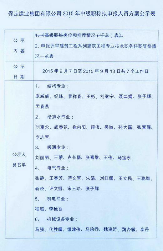 2015中级职称拟申报人员方案公示